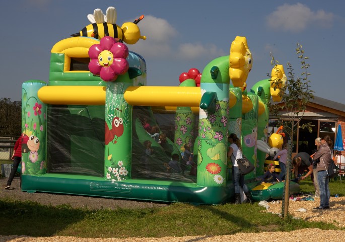 Für die kleinen Besucher und alle die Tiere mögen ist der Streichelzoo mit Zwergziegen eine schöne Attraktion. Für die Kleinen hat es auch noch eine interessante Hüpfburg.
